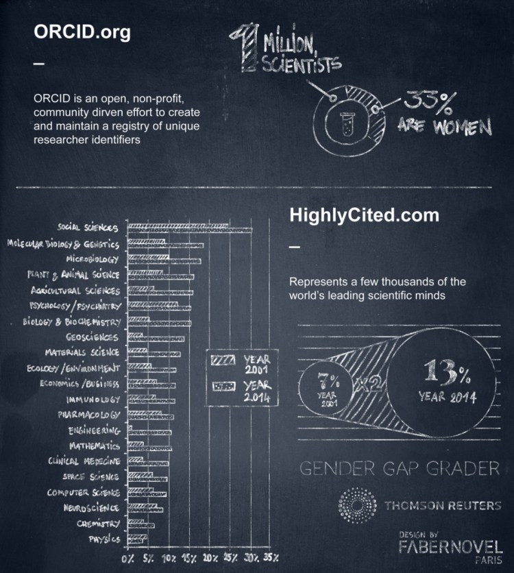- In 2001 women scientists were 7% of all researchers mentioned in HighlyCited; the number grew to 13% in 2014.